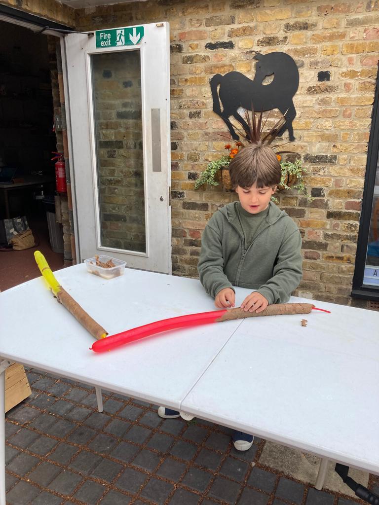 There was a children’s art workshop going on this morning, so I had a lot of young visitors curious to know what I was doing. Many of them wanted to help, so I got them covering balloons with cardboard-mâché; they did a fantastic job and many will come back and see their work incorporated into the installation. The smaller children were keener on the actual balloons than covering them, and a bit of balloon-modelling went on, which was a whole lot more interesting than cardboard-mâché.