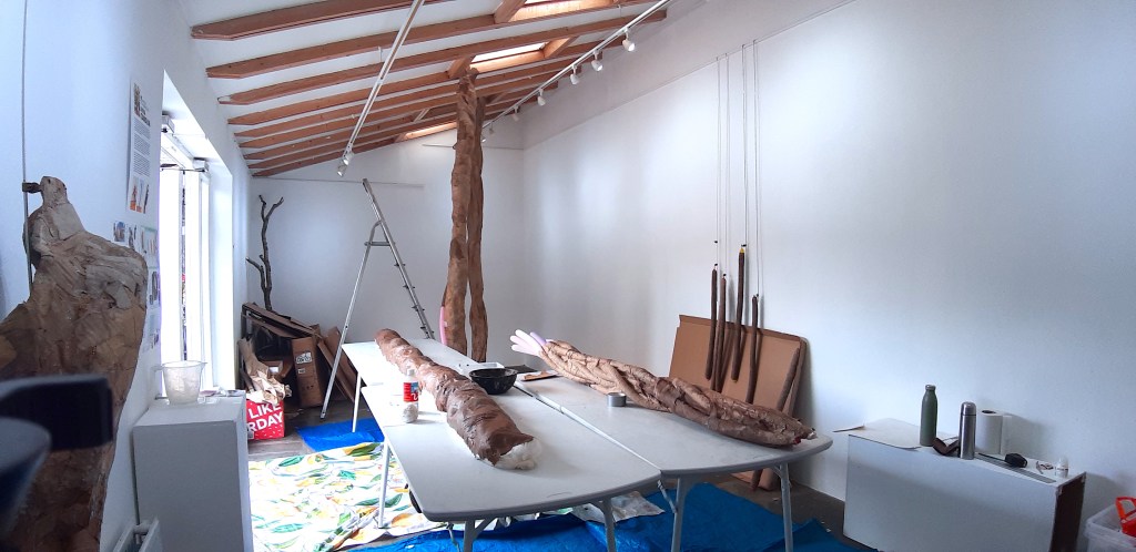 Laura, Barbara and I discussed the workshop that is part of the residency. I want the children to create strange beings out of clay, to be covered in cardboard mâché. Each of these beings will later be connected together in some way, to form a circle; it’s a children’s version of posthumanism, in which each entity on the planet is interlinked and equitable, with no one entity being more dominant or important than the others. My dissertation was based on this philosophy, and I got very inspired by Timothy Morton, who proposes a mesh of strange and interconnected beings and a respectful contemplation of otherness. He says that art can give us insights into what might reside in alien and liminal spaces: it can ‘allow us to glimpse beings that exist beyond or between our normal categories’. Weird is good. So I will try and make a child-friendly version of this and call the workshop ‘Strange Beings’.