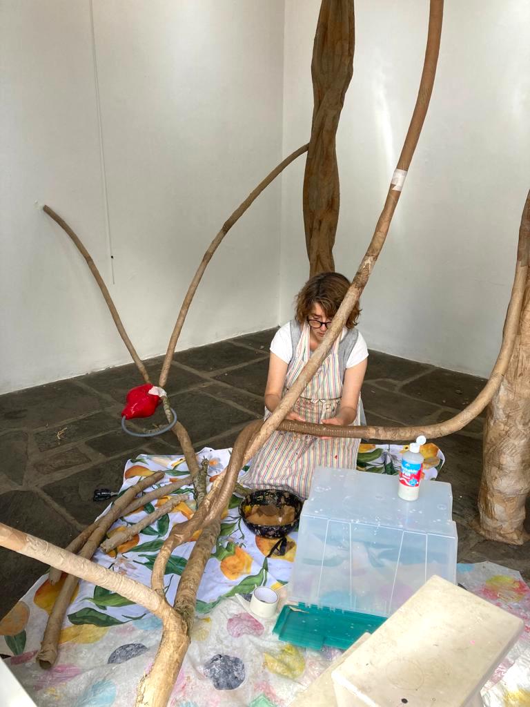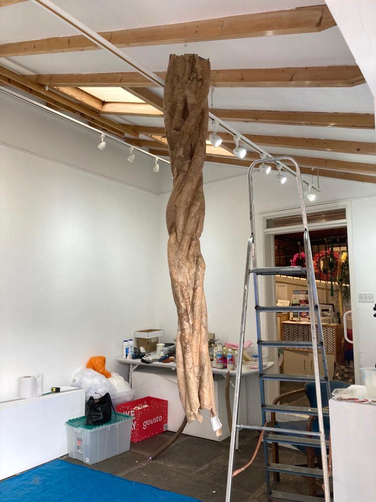 It was another quiet day at work, although there were a few passing visitors. One said that this was a rootscape, which I liked the sound of. I began by de-stuffing the big taproot, which means making a cut in its side which then has to be repaired. I wound some balloons around the hole to cover it up. Then I had fun making connections with the snakey tendrils and adding balloons to twist around them.